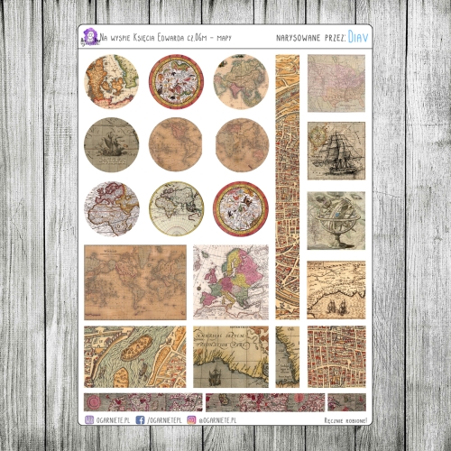 Szósta część zestawu posiada wiele "podczęści" ;). Na arkuszu 06m znajdują się fragmenty starych map, idealne do kolaży!