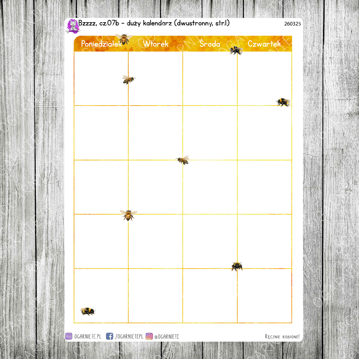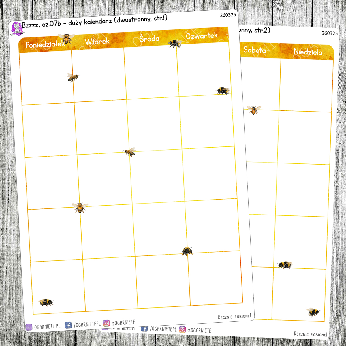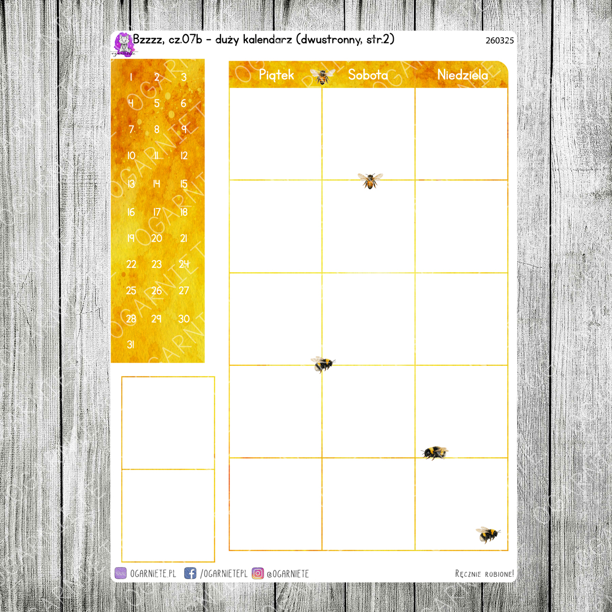 Bzzzz, cz.07b - duży kalendarz miesięczny na dwie strony - z dekoracjami