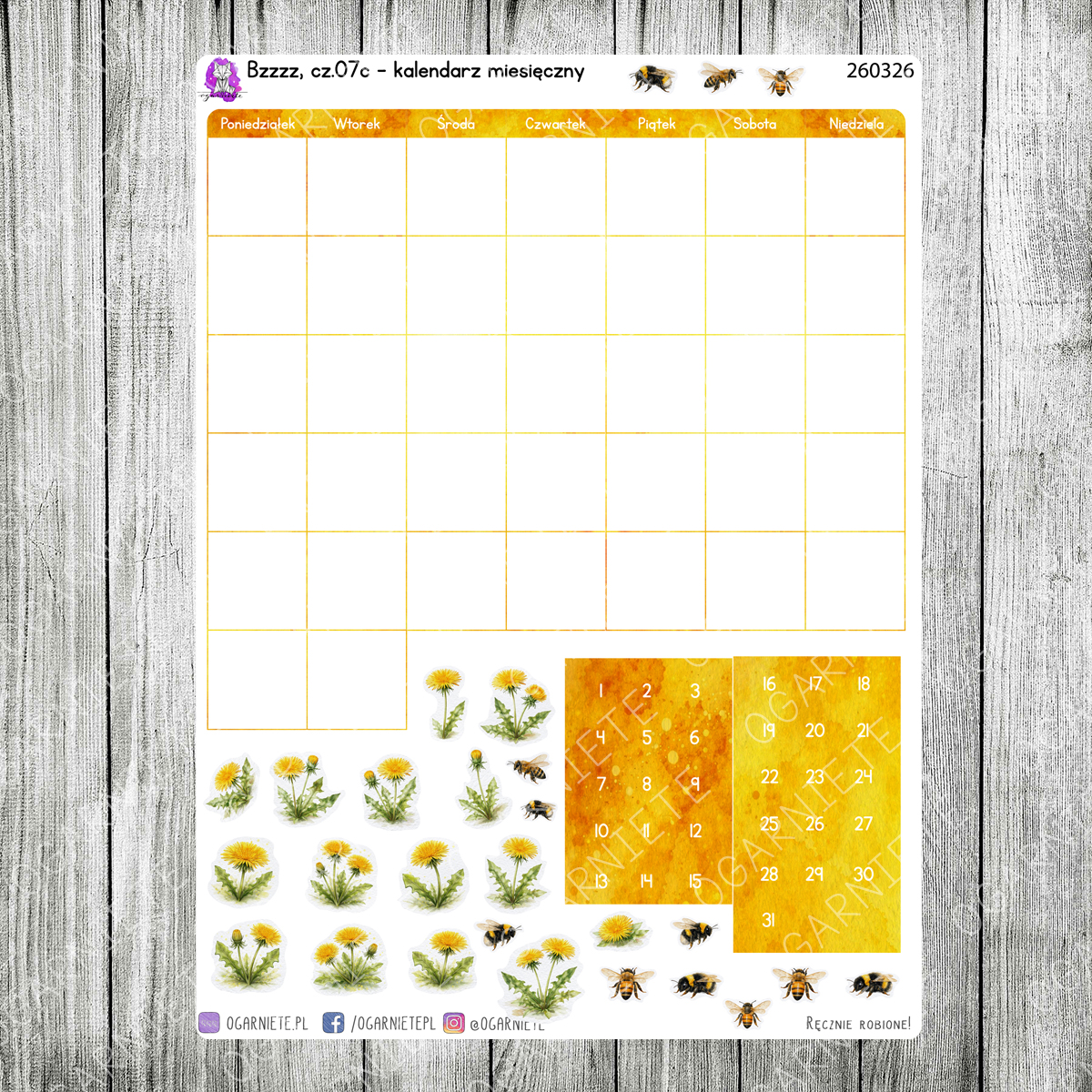 Kalendarz miesięczny, który swobodnie mieści się na stronie a5.